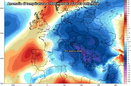 Addirittura a metà settimana osserveremo un nuovo crollo delle temperature ad opera di correnti fredde balcaniche, pronte a regalarci almeno tre giorni fin troppo freddi per il periodo! Come anticipato in questo articolo è probabile un sensibile calo termico, fino a 8°C sotto le medie del periodo! L’instabilità sarà invece molto esigua, relegata principalmente al sud e sulle isole maggiori.