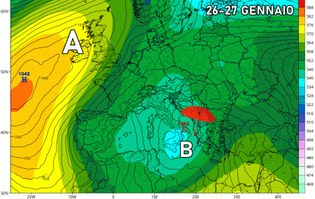 Giovedì 26 gennaio: depressione sulle regioni del sud con maltempo diffuso. Riscvhio nubifragi su Sicilia e Calabria. Neve in Appennino meridionale oltre 800 metri. Fiocchi anche sull’Appennino centrale. Più stabile al nord.