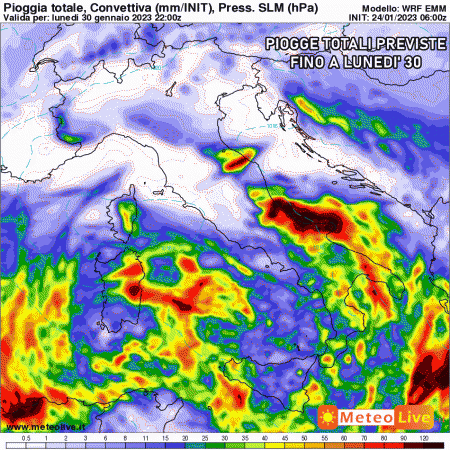 Mercoledì 25 gennaio: piogge sparse al sud con neve oltre i 600-700 metri, nubi e instabilità anche lungo il versante adriatico. Depressione in formazione tra pomeriggio e sera a ridosso della Sicilia. Più soleggiato sui settori tirrenici settentrionali e al nordovest.
