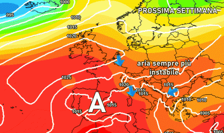 Ed è proprio ciò che avverò nei prossimi giorni, già da questo week-end! Aria più fresca e fortemente instabile si infiltrerà ad alta quota su tutto lo Stivale, dando inizio ad un lungo periodo marcatamente instabile. I contrasti termici saranno tali da favorire la formazione di numerosi temporali soprattutto su monti e colline, nonché in pianura Padana. I fenomeni potrebbero rivelarsi molto forti a livello localizzato, con accumuli di pioggia molto disomogenei ma localmente abbondanti.