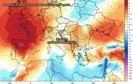 Le temperature, in tutto questo contesto, subiranno una lentissima e costante flessione tanto che tra 8 e 13 agosto potremmo ritornare su valori termici attorno alle medie del periodo o leggermente al di sopra: