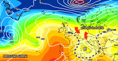 Solo tra venerdì e domenica potrebbe scorrere un nucleo instabile leggermente più organizzato in grado di portare fenomeni più diffusi e forti soprattutto al centro e al sud, come ampiamente discusso in questo articolo.