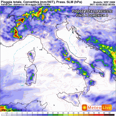Anche il nord riceverà una discreta dose di instabilità, caratterizzata prevalentemente da temporali sparsi localmente intensi. Non solo le Alpi ma anche la pianura Padana potrà osservare questi fenomeni a macchia di leopardo, in grado di determinare accumuli di pioggia fondamentali soprattutto a ridosso dei monti.