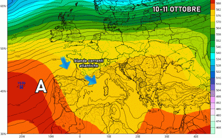Lunedì 10 ottobre: possibile graduale cedimento dell’anticiclone nel Mediterraneo. Nubi in aumento al nord e lato tirrenico, piogge sparse e deboli. Temperature stazionarie.