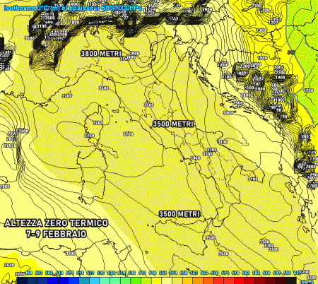 Mercoledì 9 febbraio: stabile e soleggiato su quasi tutta Italia, eccetto locali nubi basse o banchi di nebbia al nord e sul lato tirrenico. Temperature stazionarie.