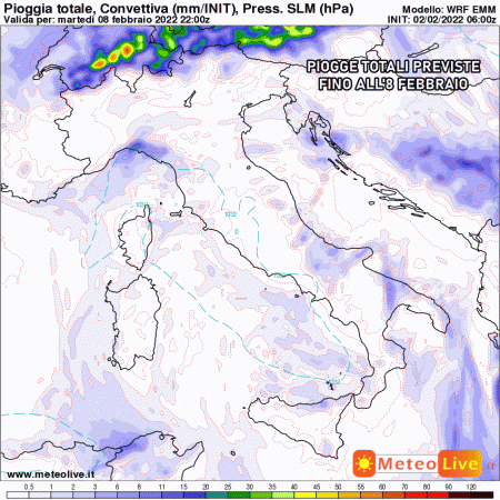 Sabato 5 febbraio: ingresso di aria umida atlantica verso le regioni tirreniche con piogge deboli e sparse. Temperature in aumento.