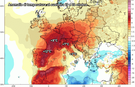 Martedì 18 ottobre: anticiclone africano disteso su tutta Italia, stabile e temperature in aumento oltre le medie.