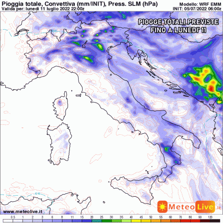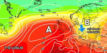 Martedì 12 luglio: temporali sparsi al nord, in estensione anche al centro e alle zone interne del sud tra pomeriggio e sera. Temperature stazionarie.