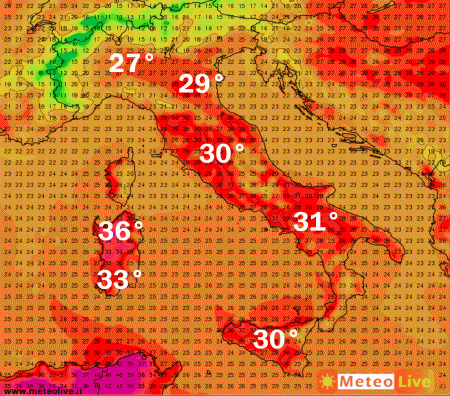 giovedì 23, venerdì 24 e sabato 25: bel tempo ovunque e clima caldo con punte anche over 30°C al centro, al sud e over 33°C sulle zone interne sarde, sabato sera segnali di peggioramento al nord-ovest.