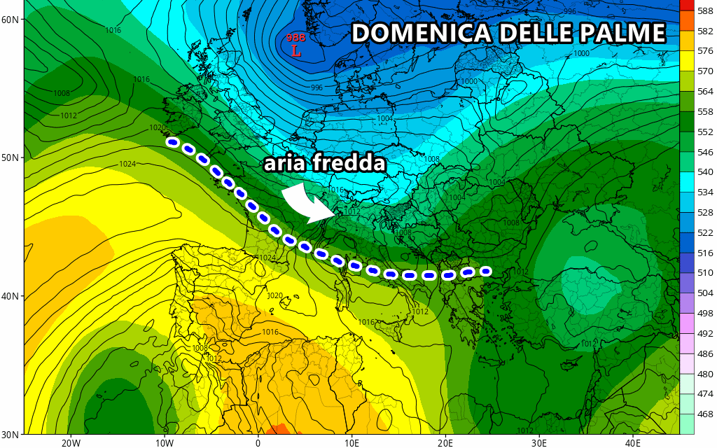 Il grosso del maltempo, tuttavia, arriverà da domenica e soprattutto nel corso della Settimana Santa, quando giungeranno nuovamente nel Mediterraneo le perturbazioni atlantiche colme di piogge e temporali e anche venti forti. Anche questo weekend potrebbe mostrare segni di forte instabilità prettamente al Nord, grazie all’arrivo di aria più fredda alle alte quote che, dopo aver incontrato il tepore sulla Val Padana, potrebbe dare luogo a temporali particolarmente vivaci a cui saranno associate non solo forti piogge ma anche grandinate con chicchi di medie dimensioni.