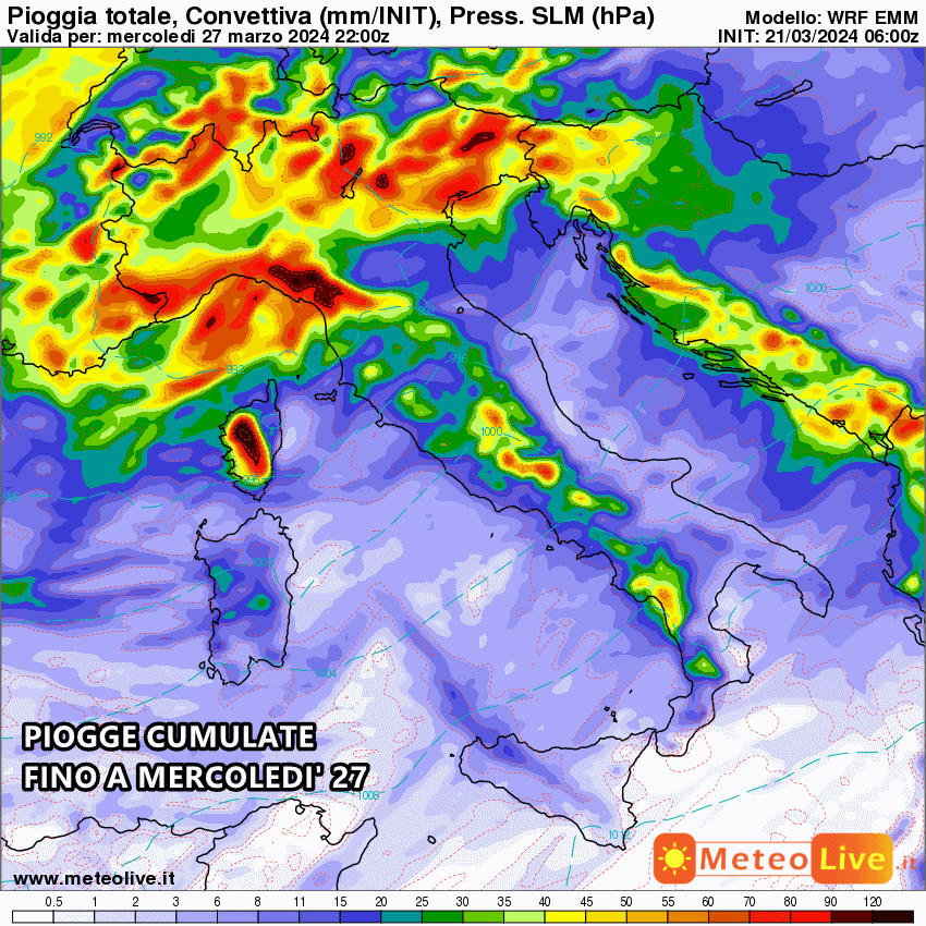 Di seguito le piogge cumulate fino al 27 marzo: