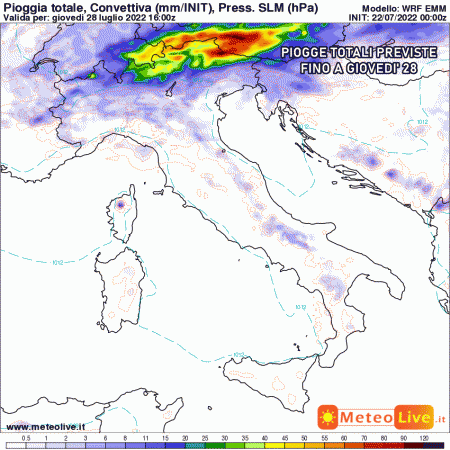 I contrasti termici saranno tali da favorire la formazione di acquazzoni e temporali localmente molto forti. Il modello americano GFS propone almeno due passaggi instabili: il primo tra lunedì sera, martedì e mercoledì, il secondo a partire da venerdì 29 luglio. In entrambe le circostanze sarebbe il nord ad essere interessato dall’instabilità, mentre il resto d’Italia continuerebbe a vivere condizioni di siccità e caldo eccezionale.