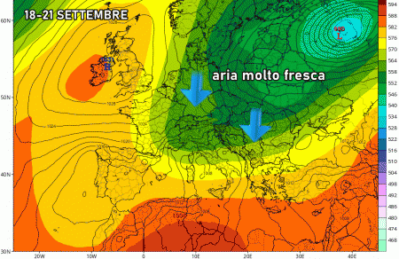 A partire dal week-end irromperà aria molto più fresca dal nord Europa, di provenienza artica, che farà precipitare le temperature da nord a sud ed ovviamente porterà una consistente dose di acquazzoni e temporali.