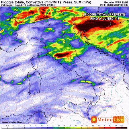 Martedì 20 settembre: rovesci sparsi sul medio-basso Adriatico e al sud, venti di maestrale in rinforzo. Sereno al nord. Temperature stazionarie, fortemente sotto le medie del periodo.