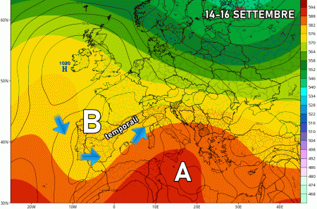 Tra mercoledì e giovedì tale perturbazione potrebbe muoversi verso est riuscendo così ad attraversare il nord ed il medio-alto Tirreno a suon di temporali (ve ne abbiamo parlato in questo articolo).