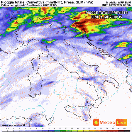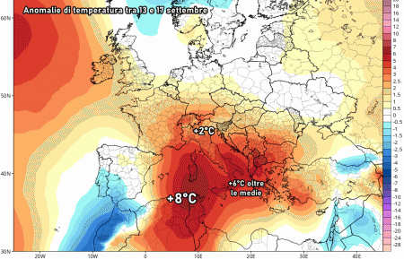 Giovedì 15 settembre: caldo ben presente al centro e al sud, maltempo al nord, in estensione nella seconda parte di giornata anche al medio-alto Tirreno. Temperature stazionarie o in lieve calo solo al nord.