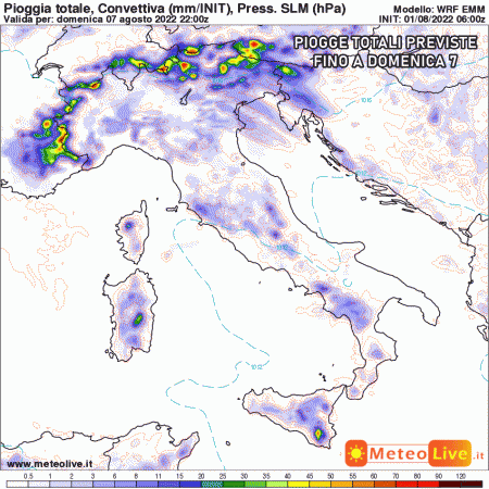 Martedì 2 agosto: generalmente stabile con rari fenomeni sulle Alpi con sconfinamenti in pianura Padana entro sera. Temperature stazionarie o in lieve aumento. Maestrale in indebolimento al sud.