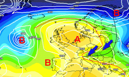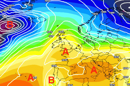 La coda di un fronte freddo diretto sull’Europa orientale porterà un calo delle temperature, un po’ di vento da nord-est unitamente ad annuvolamenti sparsi con qualche locale rovescio specie al centro e al sud…nient’altro!
