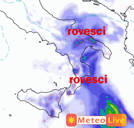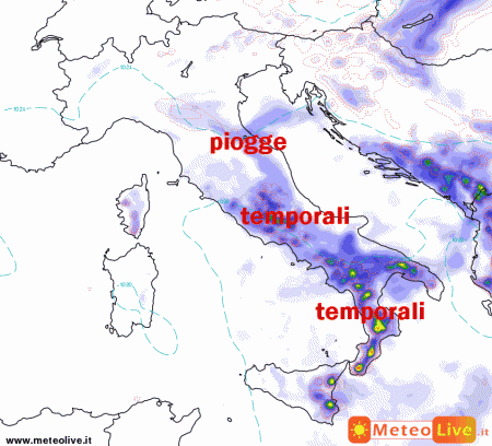 Venerdì l’aria instabile seguiterà ad insistere su quasi tutte le regioni meridionali, rinnovando la fenomenologia, come vediamo anche nella mappa che segue: