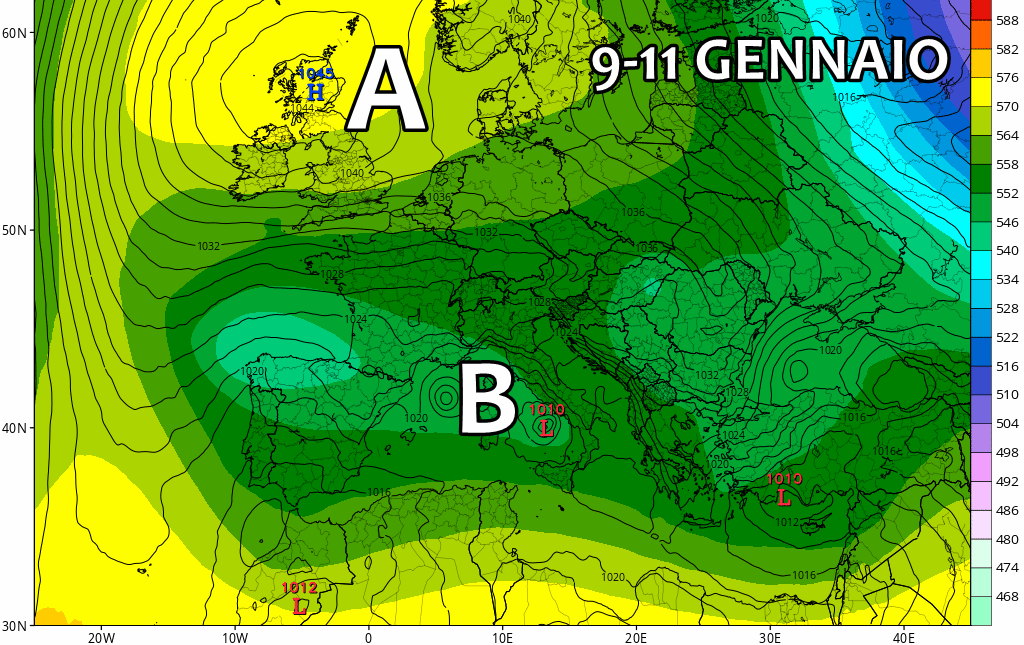 Martedì 9 gennaio: possibile neve fino a quote bassissime al nordovest (da confermare). Instabilità frequente al sud, isole maggiori e medio Tirreno.