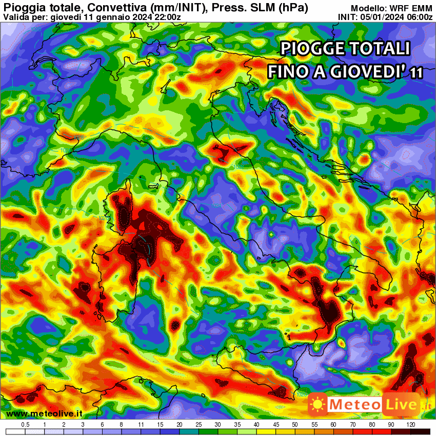 Con l’arrivo dell’Epifania il maltempo si estenderà anche al resto d’Italia, garantendo piogge diffuse e democratiche, sebbene non mancherà qualche fenomeno piuttosto forte e temporalesco come ad esempio su Campania, Basilicata e Calabria. Inoltre tra 6 e 7 gennaio soffieranno impetuosi venti meridionali e occidentali, con raffiche oltre i 70 km/h che contribuiranno ad una potente mareggiata sul Mediterraneo, in particolare su Canale di Sardegna, Canale di Sicilia, basso Tirreno e mar Ionio.