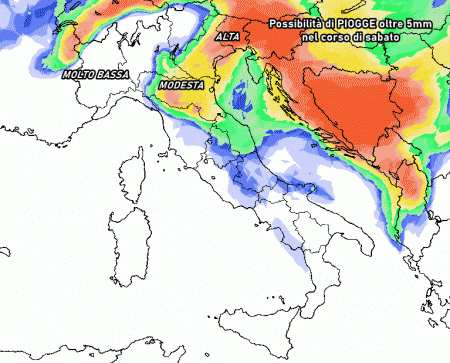 Qualche intenso temporale potrà svilupparsi sul nordest tra sabato pomeriggio e sera, specie su Veneto, Friuli ed Emilia orientale. Più asciutto sul nordovest, dove comunque non escludiamo qualche rapido acquazzone che poco nuocerà alla grave siccità presente (leggi qui maggiori informazioni).