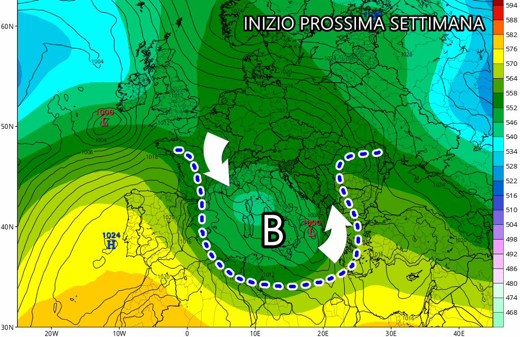 Il maltempo ci farà compagnia non solo nel weekend ma anche all’inizio della prossima settimana, quando il ciclone tenderà a persistere all’interno del Mediterraneo, garantendo altre precipitazioni su buona parte dello stivale e fiocchi di neve in alta quota.