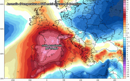 Domenica 22 maggio: caldo che permane su tutta Italia, clima estivo ovunque. Massime fino a 35-36°C in pianura Padana e zone interne del centro e del sud. Temporali pomeridiani e serali sulle Alpi.
