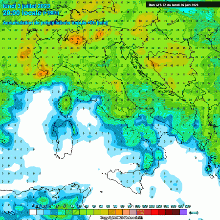 Mercoledì 28 Giugno: temporali notturni probabili al nord, in Val Padana. Temporali pomeridiani sull’Appennino centro-settentrionale e nuovamente al nord in serata. Sereno ed Estate piena al sud. Caldo nella norma.