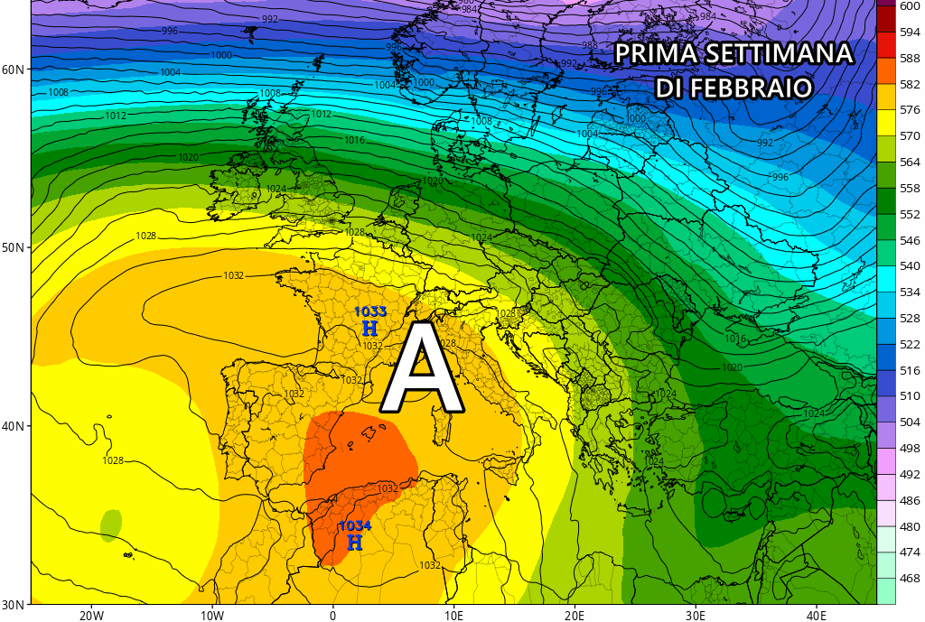 È cominciato l’ultimo mese dell’inverno meteorologico, un febbraio che apre i battenti col solito anticiclone ad avvolgere gran parte dell’Europa centro-occidentale, Italia compresa. Anche nei prossimi giorni non ci saranno grandi variazioni, con l’alta pressione letteralmente immobilizzata tra Spagna e Italia, dove porterà stabilità e addirittura un ulteriore aumento delle temperature.