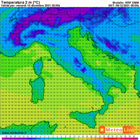 Venerdì 10 dicembre: risveglio gelido al nordovest con minime fino a -10°C sul basso Piemonte a causa dell’irraggiamento notturno a cui si aggiungerà l’eventuale effetto albedo nelle località innevate. Maltempo che persiste al centro e al sud, con annesso calo delle temperature.