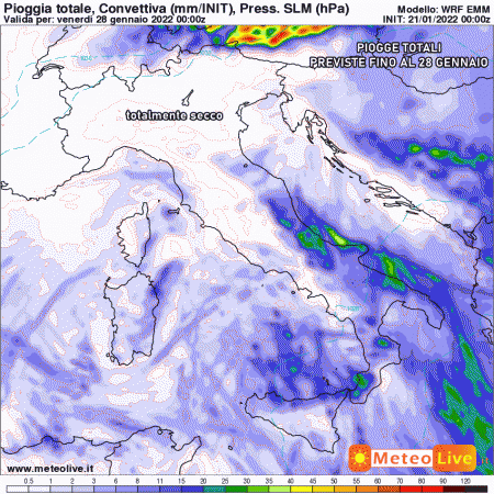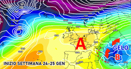 Sabato 22 gennaio: correnti molto fredde dai Balcani verso centro e sud Italia, ma con quasi totale assenza di fenomeni. Venti intensi di tramontana al centro e al sud. Temperature in calo.