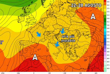 Tra venerdì, sabato e domenica avremo un’estensione dell’instabilità anche nei settori interni del centro e del nord grazie ad un lieve indebolimento della pressione. Ecco che il week-end potrebbe riservare temporali sparsi sulla Val Padana, sulle Alpi ed anche sui settori interni del centro e del sud.