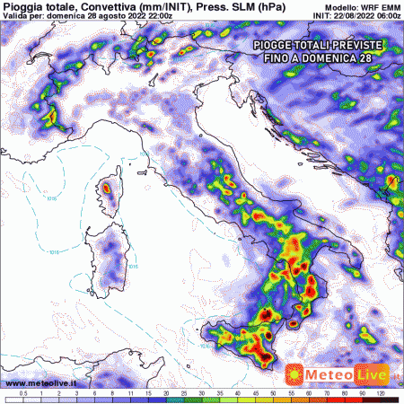 I giorni più instabili saranno martedì, mercoledì e giovedì: tanti rovesci e temporali pomeridiani coinvolgeranno Sicilia, Calabria, Basilicata, Campania, Puglia e più marginalmente Abruzzo, Lazio, Umbria, Molise. I fenomeni saranno più presenti e intensi nei settori interni, più disorganizzati e deboli sulle coste.