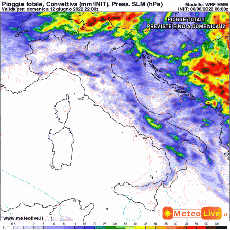 Domenica 12 giugno: stabile e soleggiato ovunque, temperature in aumento ovunque ma in maniera particolare al nord e sul lato tirrenico. Maestrale al sud e basso Adriatico.
