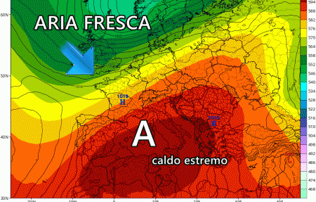 Giovedì 13 Luglio: caldo diffuso specie al centro e al sud, temperature fino a 42°C nei settori interni. Instabile al nord con temporali localmente violenti.