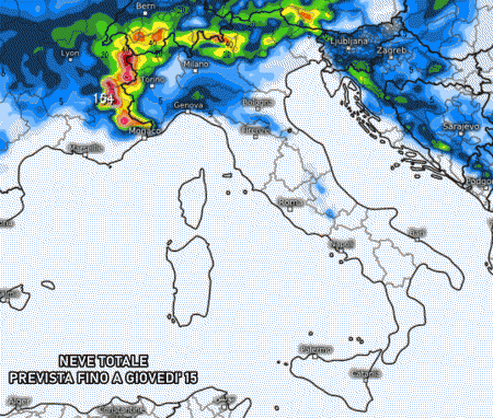 Mercoledì 14 dicembre: possibile nuova perturbazione atlantica verso l’Italia. Possibili nevicate fino in pianura al nord (da confermare). Temperature stazionarie.