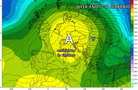 Domenica 12 febbraio: anticiclone su tutta Italia, clima rigido di notte e all’alba, più gradevole di giorno.