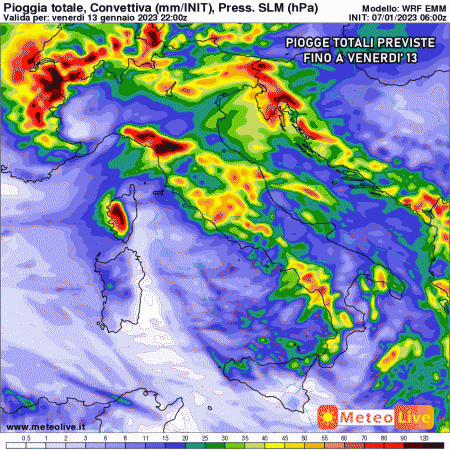 Col transito di queste perturbazioni ci aspettiamo accumuli di pioggia degni di nota sulle regioni nord-orientali e quelle tirreniche, con picchi superiori ai 70-90 mm. Fra tutte spicca l’alta Toscana e la Liguria orientale, dove potrebbero scendere anche oltre 150 mm di pioggia fino al 13 gennaio.
