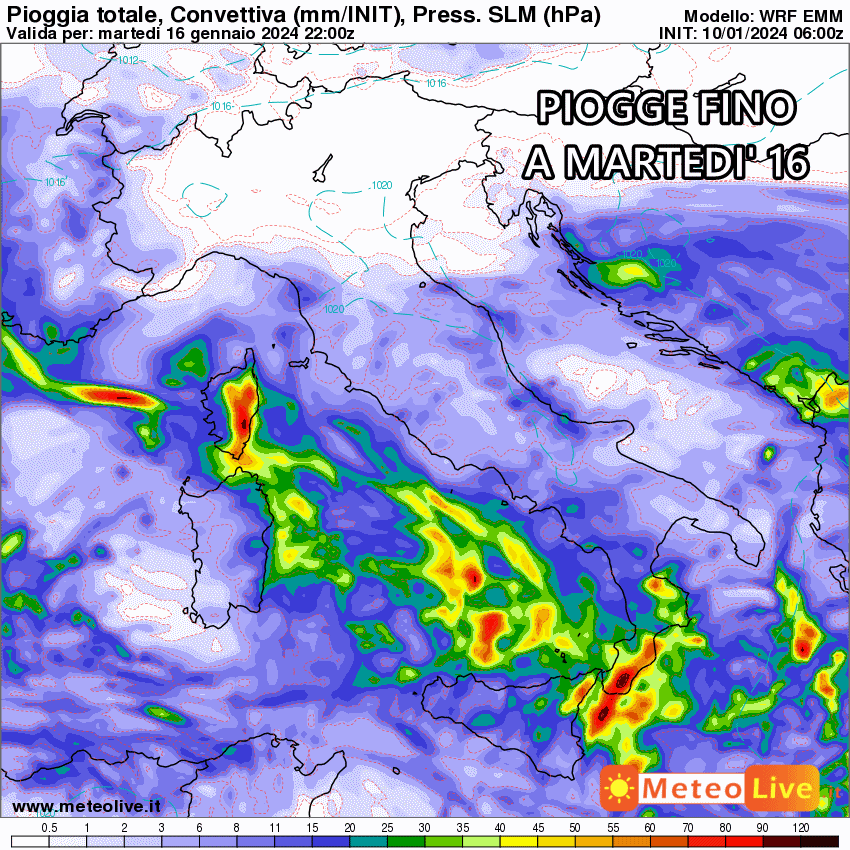 Giovedì 11 gennaio: maltempo diffuso su isole maggiori, sud e parte del centro. Neve in Appennino oltre 1000 metri. Stabile al nord. Temperature in aumento.