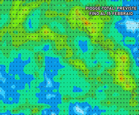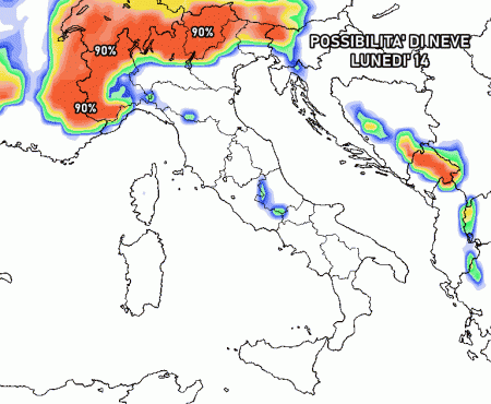 Sabato 12 febbraio: piccola depressione in formazione tra il mar Ligure ed il Tirreno. Piogge deboli e sparse al nord, specie nordovest, con neve a quote basse. Blanda instabilità anche al centro Italia e sulle isole. Temperature in netto calo.