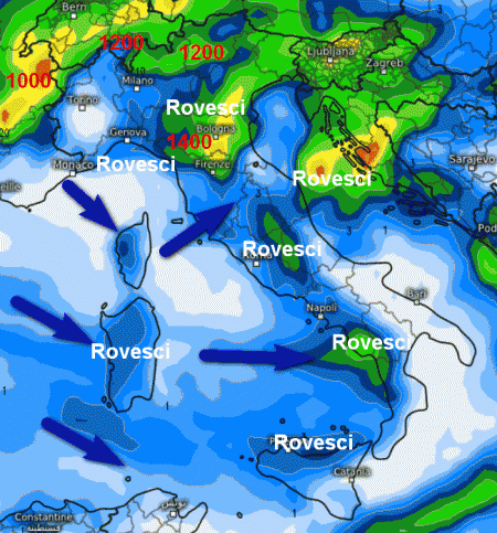 Ciò imporrà una rotazione delle correnti prima a nord-est e poi addirittura da est, con l’ingresso dell’aria fredda direttamente sull’Italia.