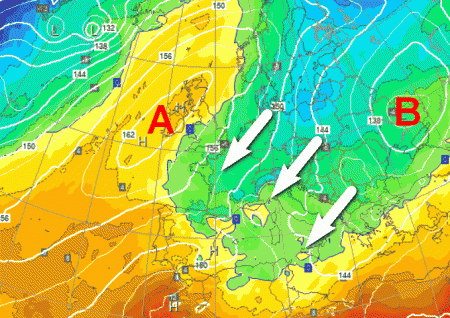 L’ingresso del freddo vero e proprio è atteso a partire da mercoledi 17 marzo, quando l’alta pressione si coricherà sui meridiani settentrionali europei: