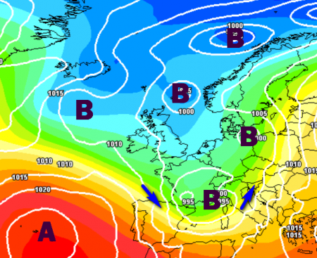 L’approfondimento di un minimo depressionario al suolo all’altezza del Mar Ligure potrebbe esaltare la fenomenologia al nord e sul Tirreno, determinando forti nubifragi e rischio di alluvioni lampo.