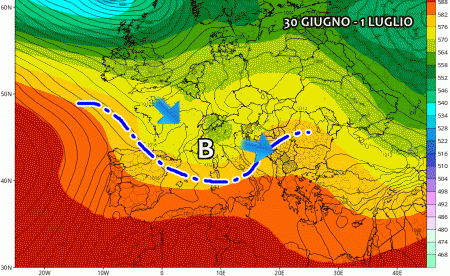 Una nuova perturbazione atlantica interesserà l’Italia tra venerdì 30 Giugno e domenica 2 Luglio, proprio all’esordio del secondo mese dell’Estate meteorologica. Insomma l’impianto barico venuto su da oltre tre mesi continua a dire la sua e impedisce agli anticicloni di impossessarsi dell’Italia per lunghi periodi di tempo.
