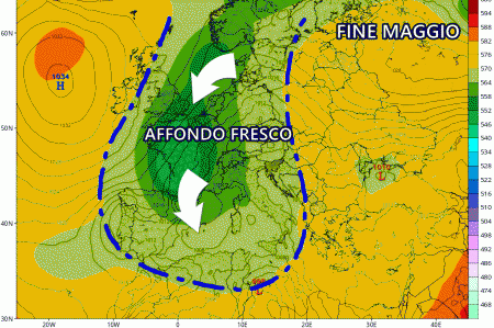 Martedì 30 Maggio: possibile vasto affondo fresco sul Mediterraneo, maltempo diffuso specie al nord e al centro (da confermare).