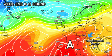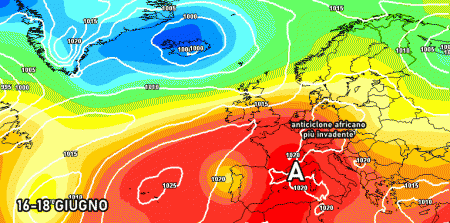 Le carte in tavola però cambieranno nella seconda metà della prossima settimana, specie tra 16 e 18 giugno: l’alta pressione africana diverrà via via sempre più invadente nel Mediterraneo centrale, iniettando aria ben più calda a tutte le quote.