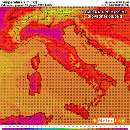 Le temperature inizieranno ad aumentare anche al sud e sul lato adriatico, riportandosi oltre le medie del periodo. Eloquenti le temperature massime previste giovedì 16, fino a 37°C in pianura Padana: