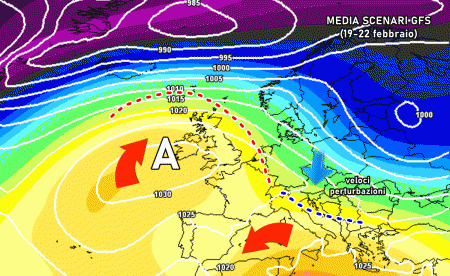 Ma quando potremo assistere ad un cambiamento? Come già anticipato in questo articolo dovremo attendere, con alta probabilità, la terza decade di febbraio per osservare modifiche sulla circolazione delle masse d’aria nella sinottica euro-atlantica. In particolare dopo il 20 febbraio potrebbe verificarsi un arretramento dell’anticiclone delle Azzorre in Atlantico, con conseguente discesa di aria fredda artica sull’Europa settentrionale e orientale: questo passaggio sarebbe indispensabile per rigenerare un serbatoio freddo a pochi passi dal Mediterraneo, dopo che l’anticiclone in questi giorni spazzerà via ogni traccia del freddo.