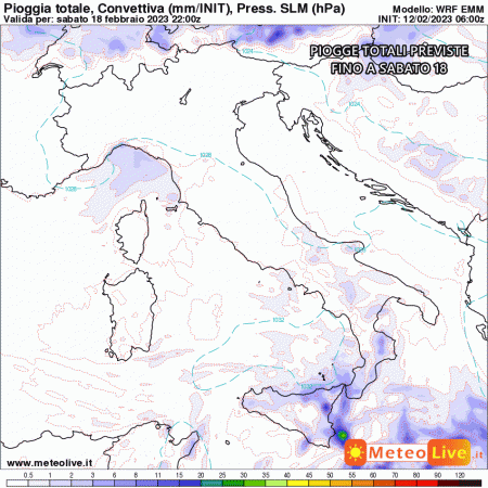 Lunedì 13 febbraio: piogge isolate su Calabria e Sicilia al mattino, in rapido esaurimento nel corso della giornata. Stabile altrove, un po’ di maestrale sul basso Adriatico.Temperature in lento aumento.